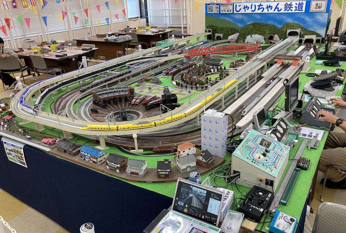 じゃりちゃん鉄道にようこそ。大阪府高槻市で16番(HOゲージ)の組み立て式レイアウトを制作している砂野義房と申します。コンセプトは「夢を持ち続ける素晴らしさ、物造りの楽しさ、趣味を通じて仲間に出会える喜び」です。実感的な運転台型コントローラーと車載カメラおよびサウンドシステム付で最大5人が同時に体験運転を楽しめます。鉄道シミュレーターの運転台も制作しておりトレイン趣味さんと共同で運転体験のイベント出展しています。